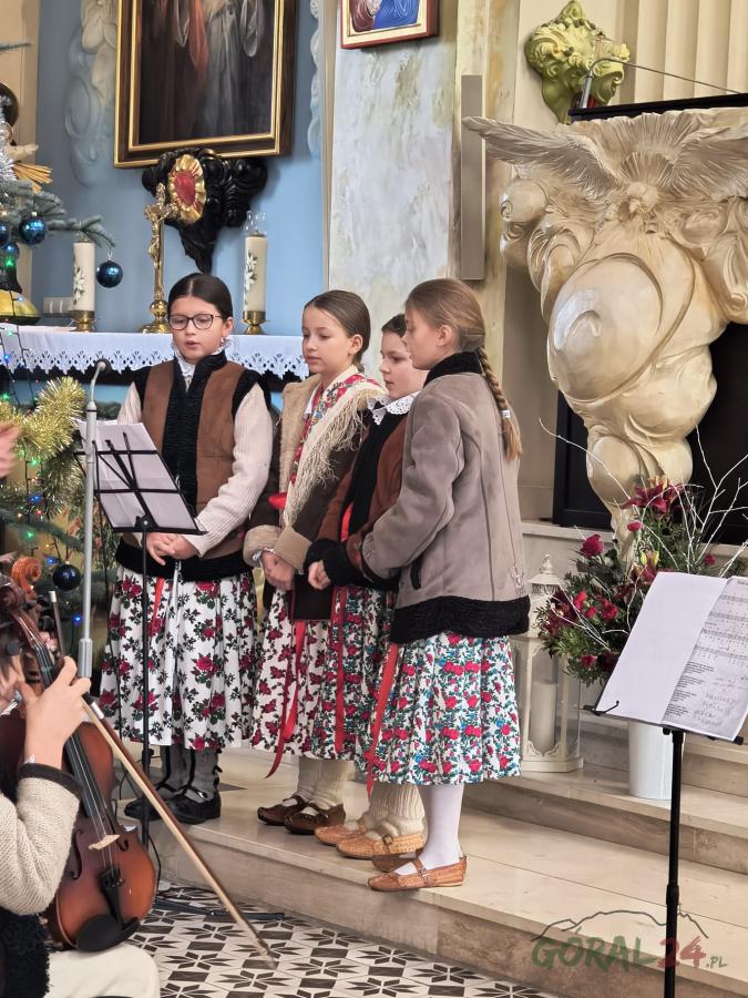 Regionalny dziecięcy zespół „Z Przytupem” z Rokicin Podhalańskich z kolędą w Żarkach koło Libiąża