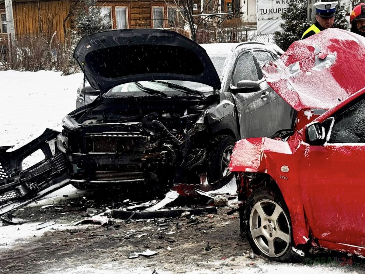 Jedna osoba trafiła do szpitala po czołowym zderzeniu w Poroninie