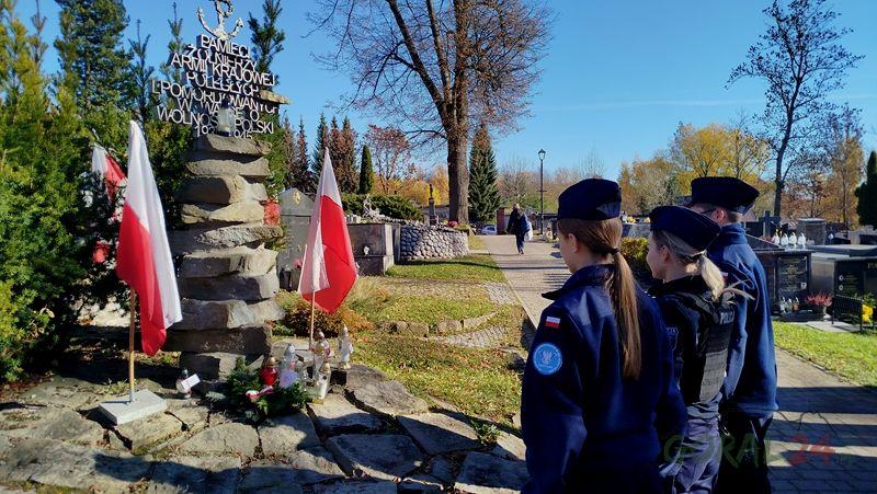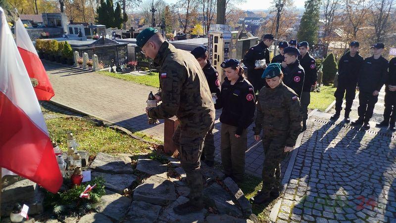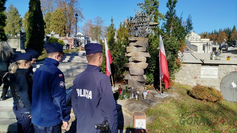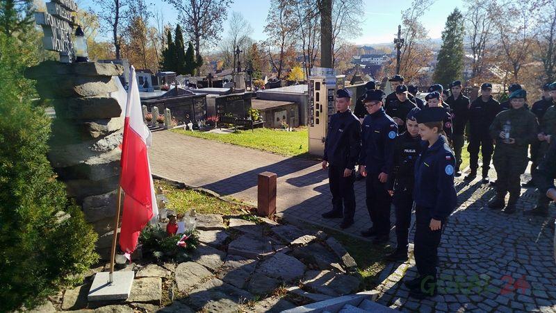W galerii zdjęć z uroczystości na starym cmentarzu w Nowym Targu widzimy młodzież i służby mundurowe oddające hołd poległym.