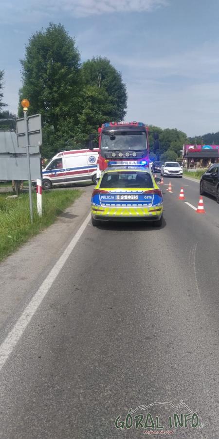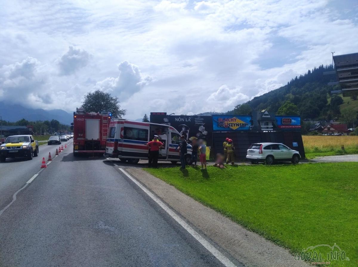 We czwartek 27 czerwca około godziny 14.30 na Ustupie w Zakopanem doszło do zderzenia motocykla z samochodem osobowym. Fot. KP PSP Zakopane