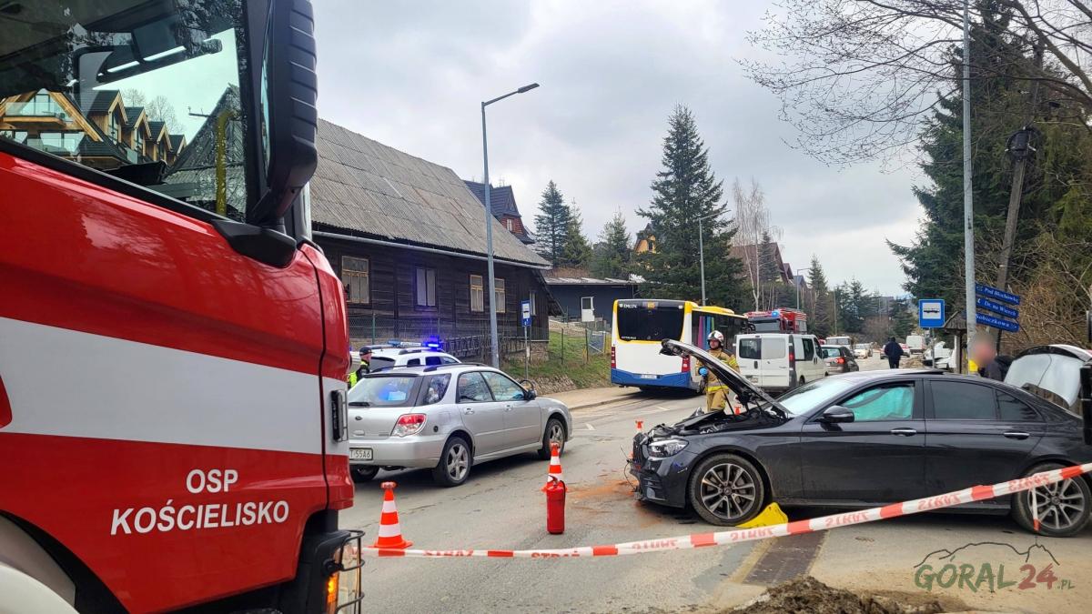 Kolizja w Kościelisku. Samochód osobowy zderzył się z autobusem