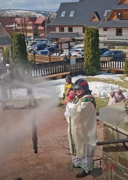 Ksiądz z lancą strażacką zaskoczył wiernych - Lany Poniedziałek w Dzianiszu
