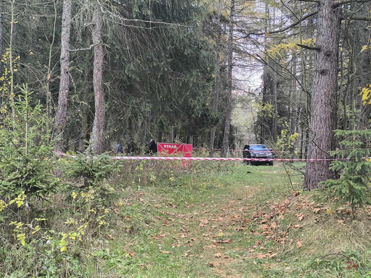 Zdjęcia Martwy mężczyzna znaleziony w lesie w Nowej Białej - fotorelacja