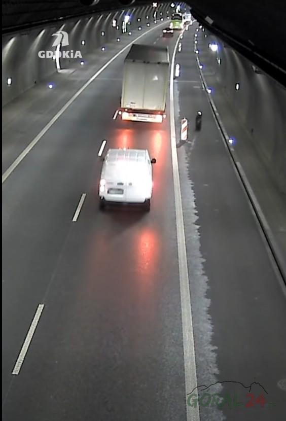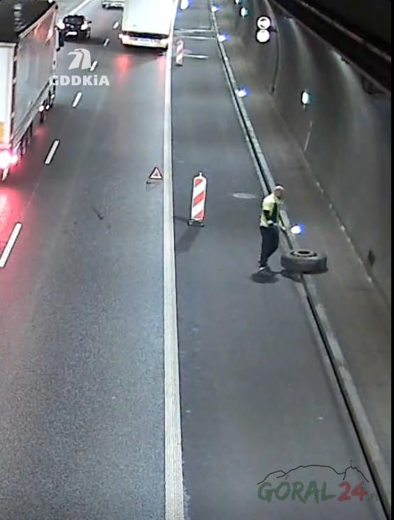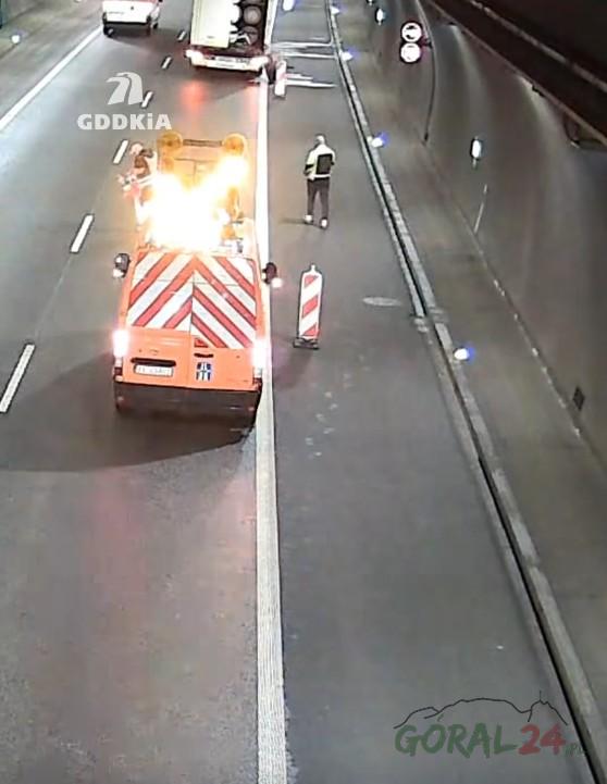 Zdjęcia Niebezpieczne zdarzenie w tunelu na zakopiance. Koło odpadło z ciężarówki - fotorelacja