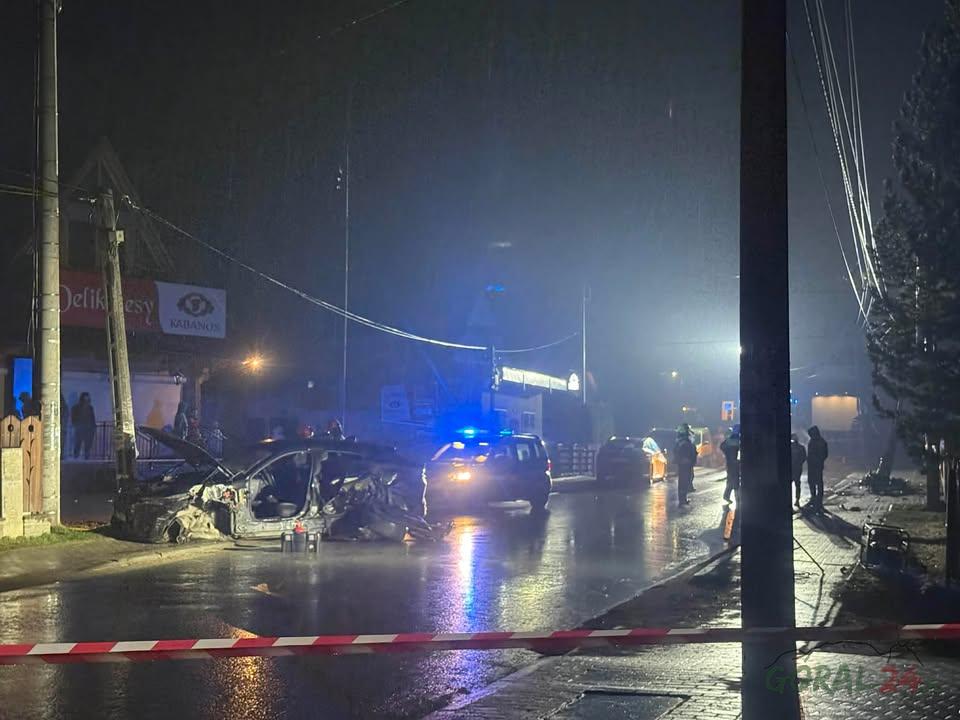 Nocne zdarzenie w Poroninie - samochód z impetem uderzył w słup