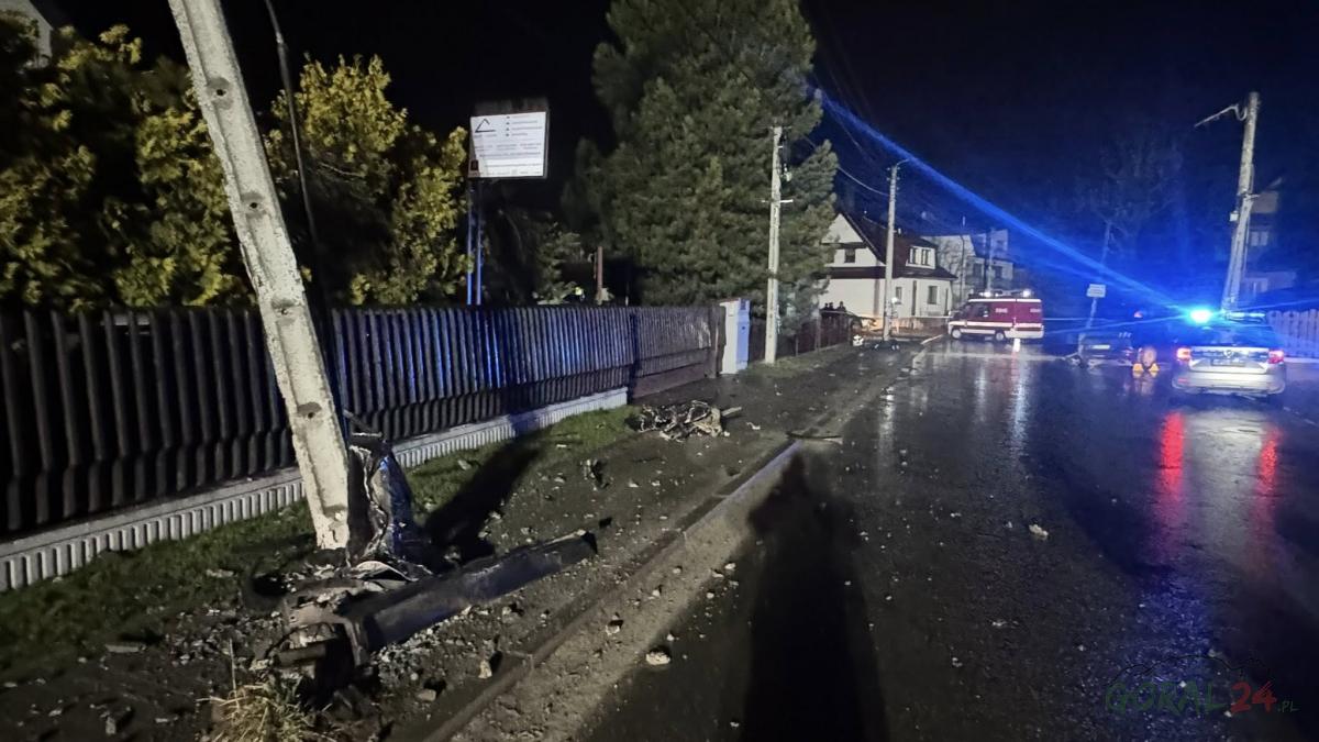 Nocne zdarzenie w Poroninie - samochód z impetem uderzył w słup