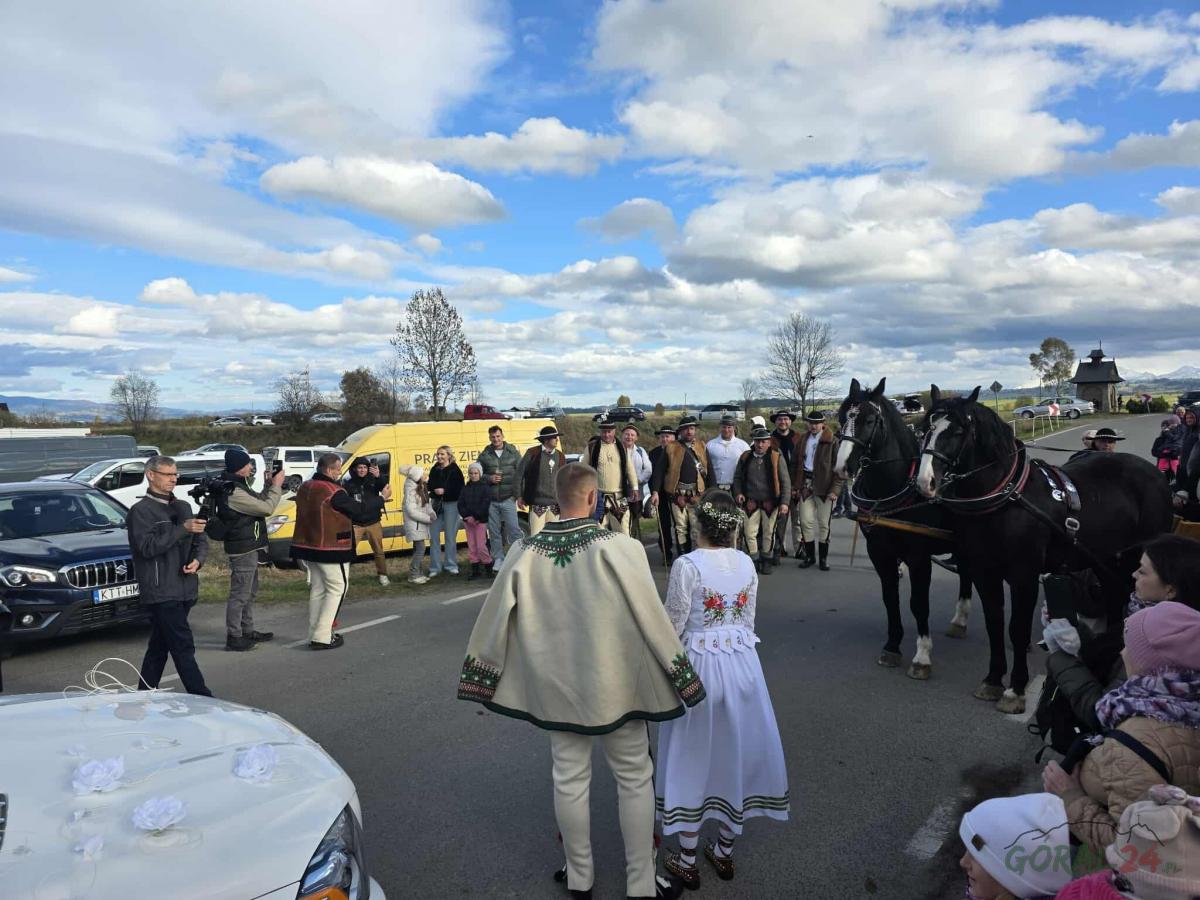 Zdjęcia przedstawiają jesienny redyk Braci Hyrczyków, pełen tradycji i radości. Udekorowany samochód pary młodej zatrzymany został przez uczestników, którzy przygotowali góralską bramę weselną. serdeczności i radości.