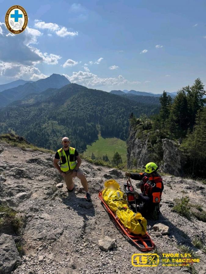 Na zdjęciach przedstawione są akcje ratunkowe Tatrzańskiego Ochotniczego Pogotowia Ratunkowego. Ratownicy udzielają pomocy poszkodowanym turystom w górach.