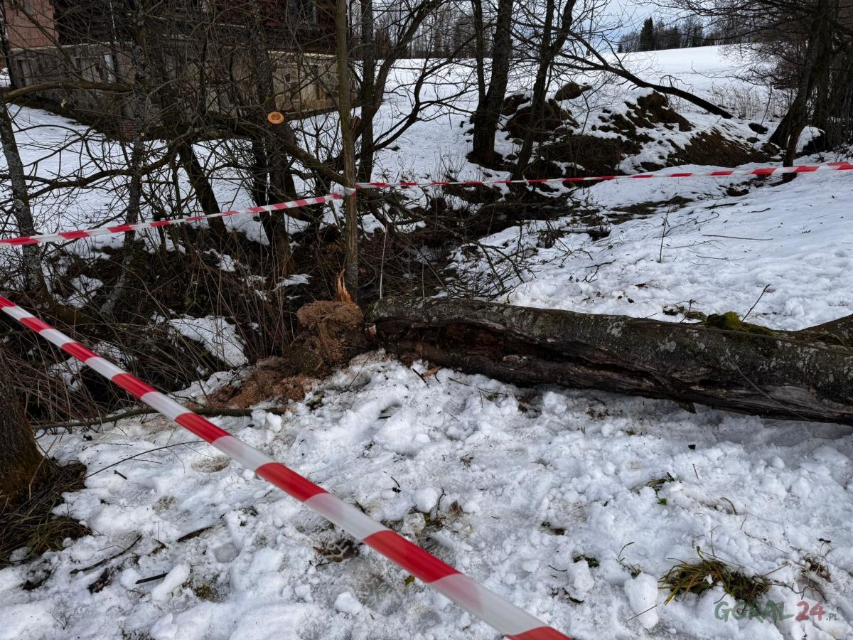 Poranna akcja strażaków - drzewo pochylone na dom zostało wycięte