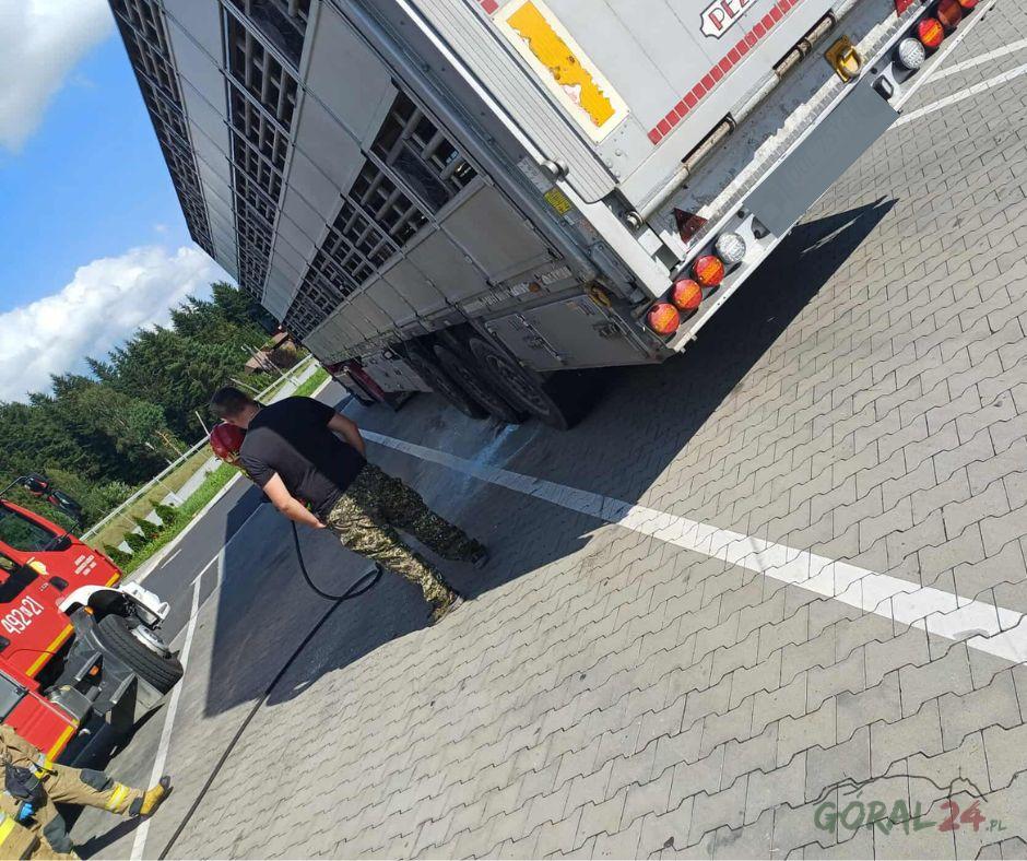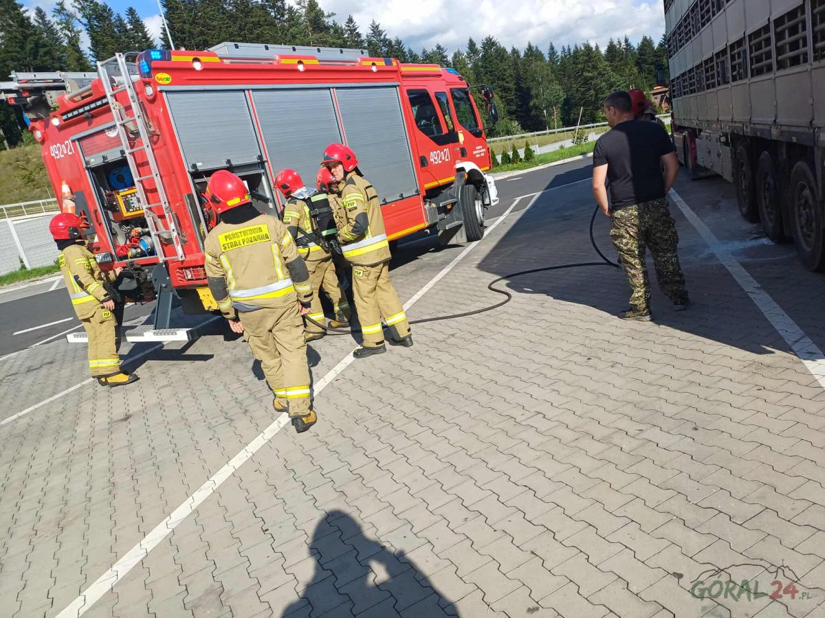 W galerii zdjęć z działania strażaków w akcji po pożarze samochodu ciężarowego z naczepą na parkingu MOP Zbójecka Góra.