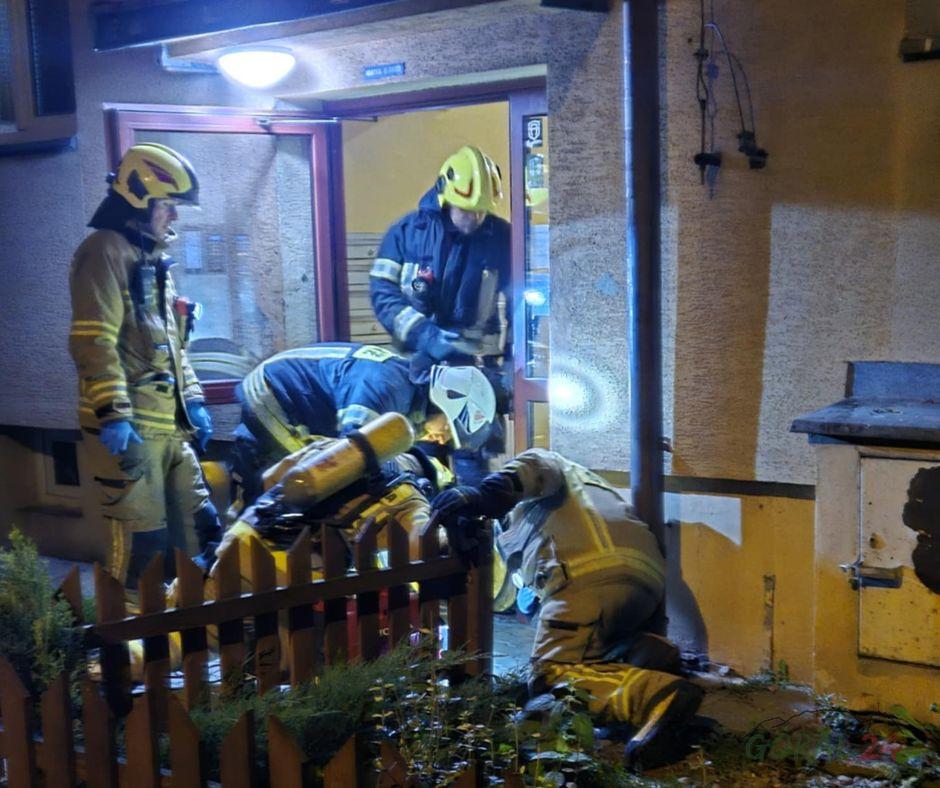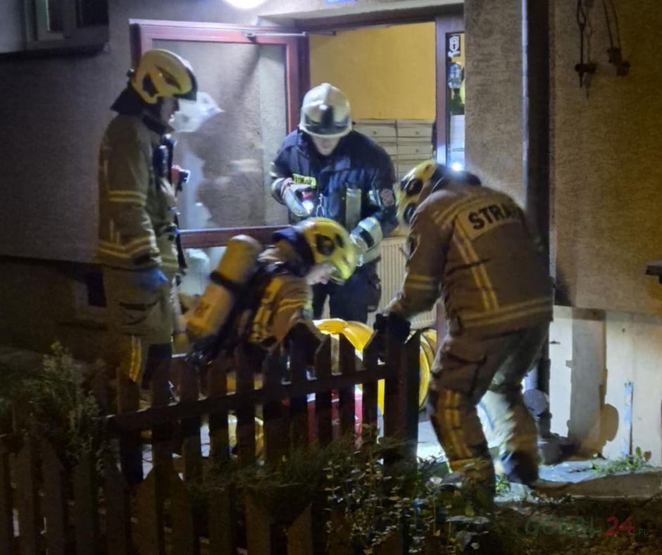 Galeria zdjęć przedstawiająca działania służb ratunkowych po pożarze w pomieszczeniach piwnicznych.