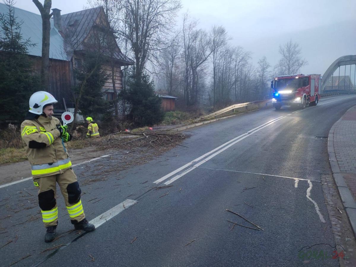 Strażacy z Chochołowa usunęli powalone drzewo nadgryzione przez bobry