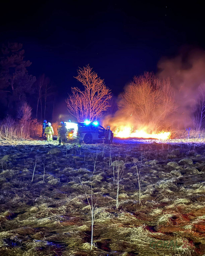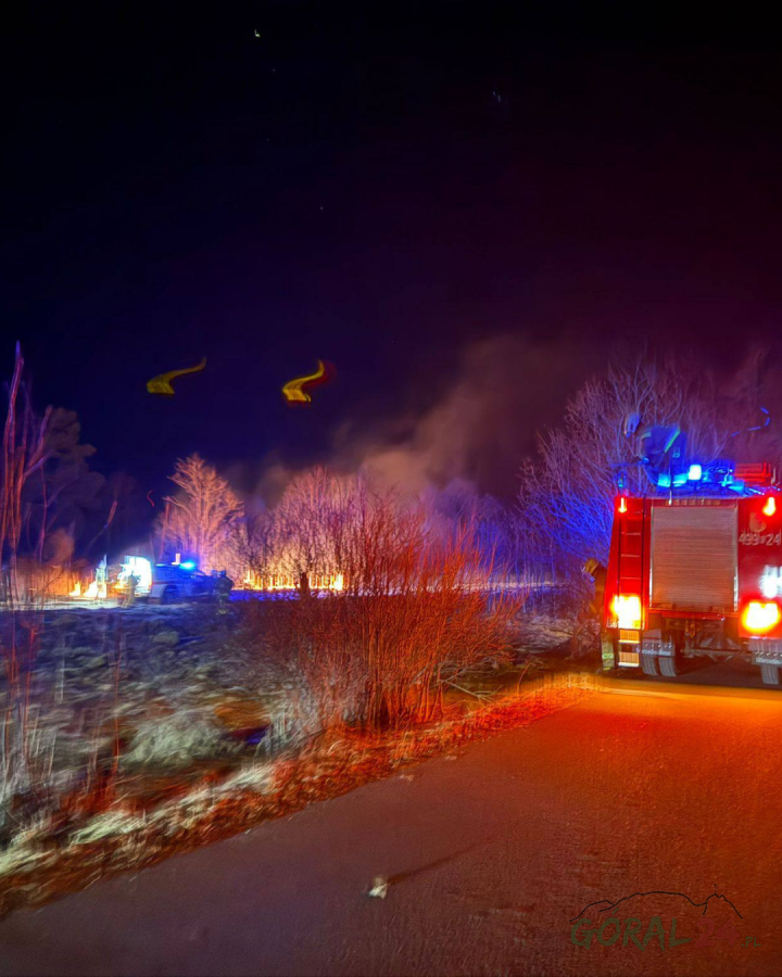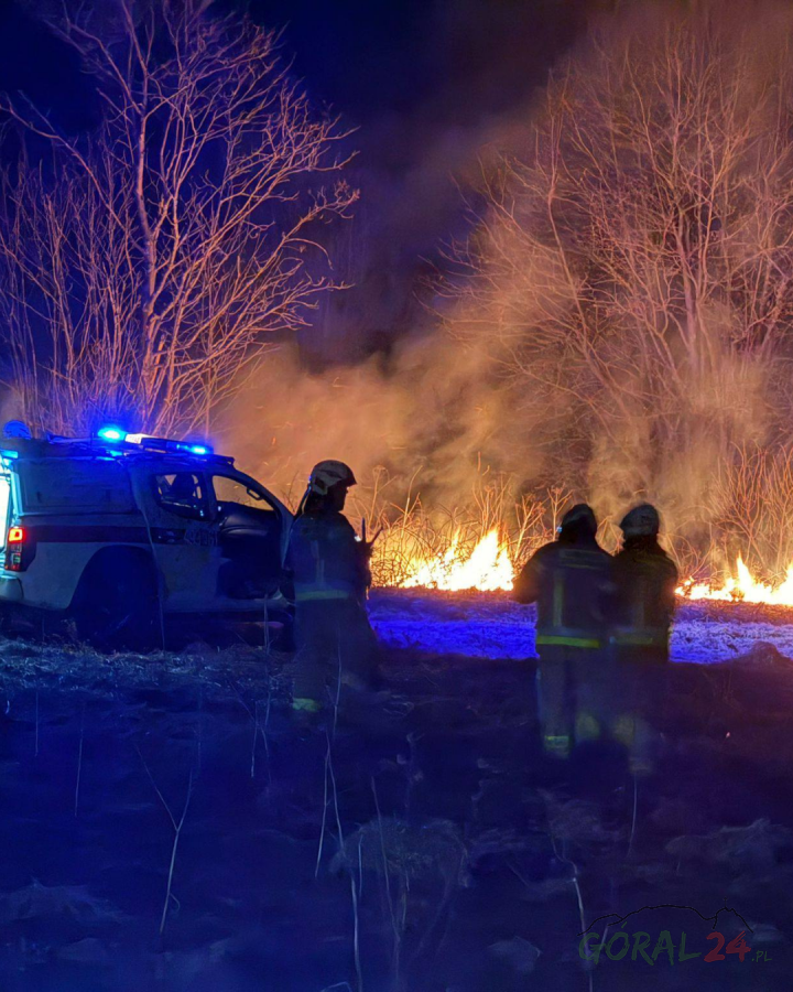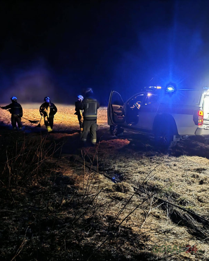 Strażacy z OSP Podczerwone gasili pożar traw na nieużytkach rolnych