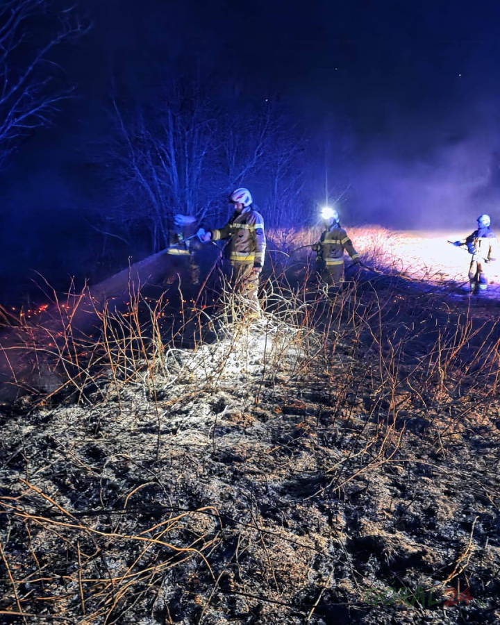 Strażacy z OSP Podczerwone gasili pożar traw na nieużytkach rolnych