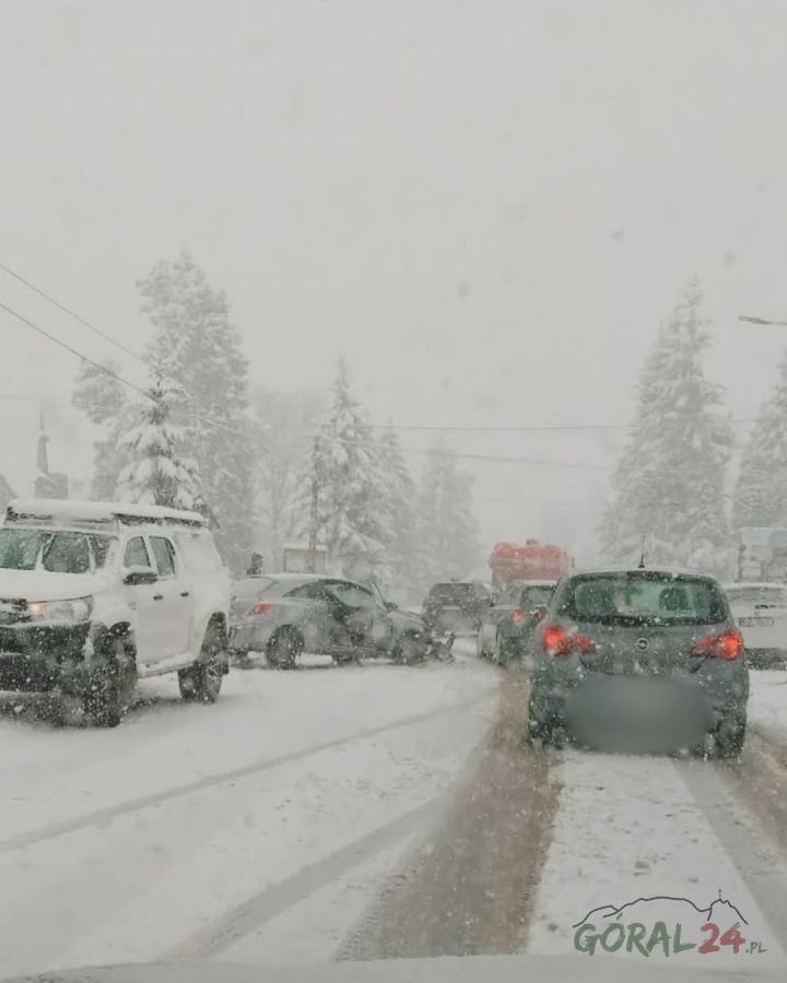 Śnieg paraliżuje drogi w powiecie tatrzańskim. Są pierwsze kolizje