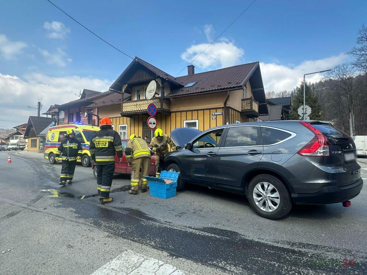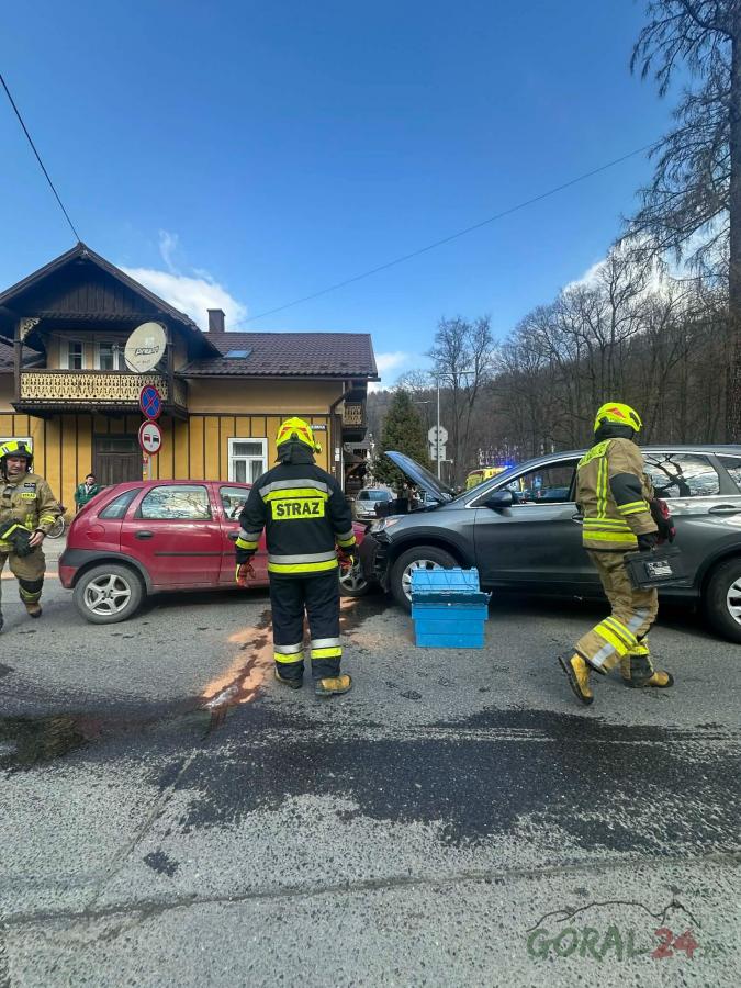 Zderzenie samochodów osobowych w Szczawnicy